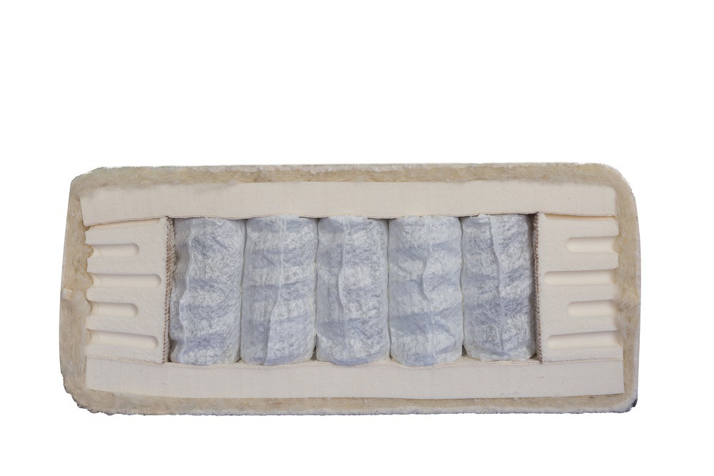250 stuks 7-slags tonvormige semi-actieve pocketveren per m². 7-zone kern voorzien van lende-, heup- en schoudercomfortzone. Beide zijden afgedekt met 3.75 cm natuurlatex en 0.5 cm gelatexeerde kokos en paardenhaar. Voorzien van gezoneerde natuurlatex side-stabilisatoren.